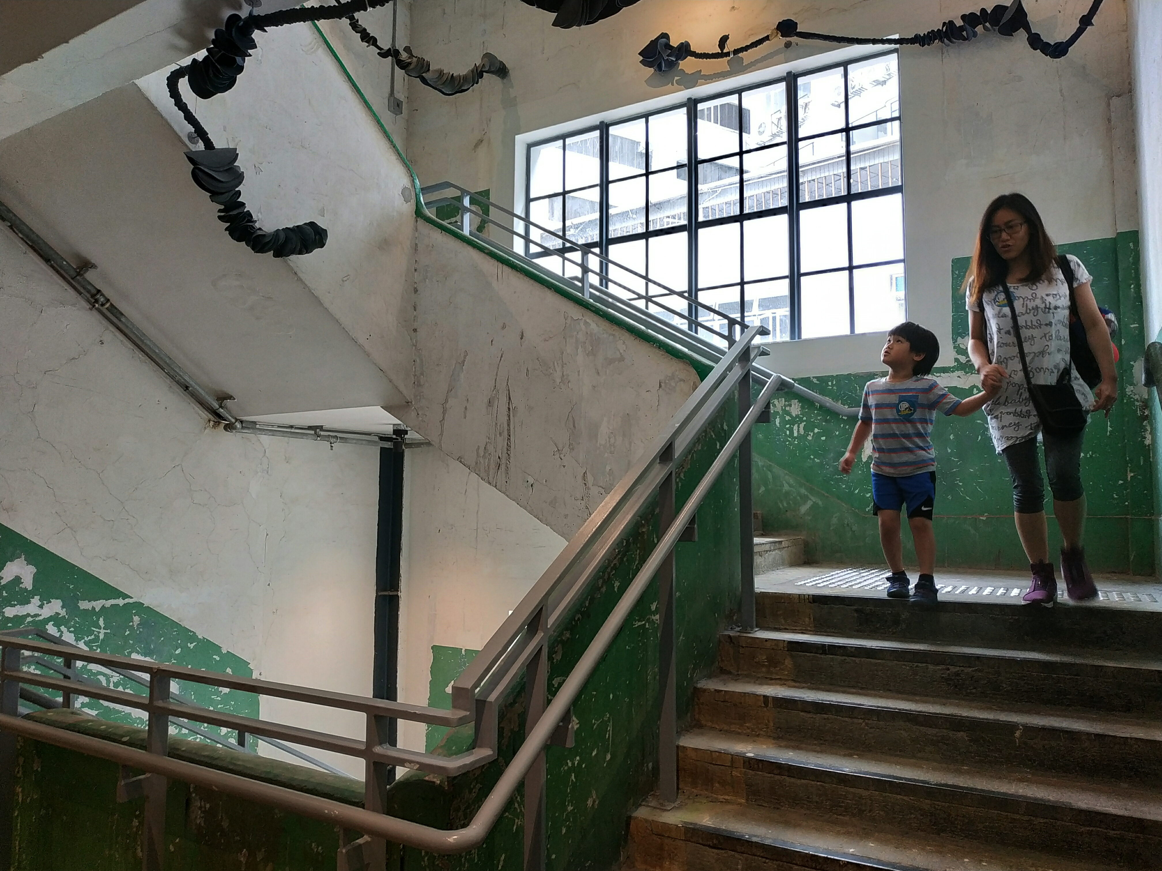 廠房樓梯的牆面已相當殘舊。