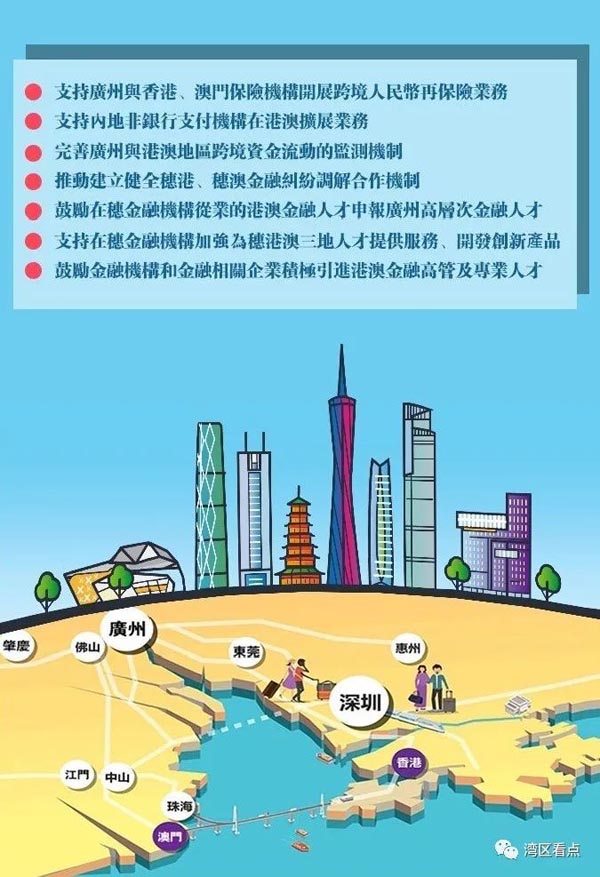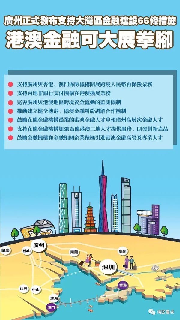 “灣區看點”梳理發現,《方案》從推進重大項目和平台建設、促進粵港澳大灣區跨境貿易和投融資便利化、擴大金融業對外開放、推進穗港澳資金融通渠道多元化、進一步提升粵港澳大灣區金融服務創新水平、切實防范跨境金融風險六個方面提出了66條具體措施。