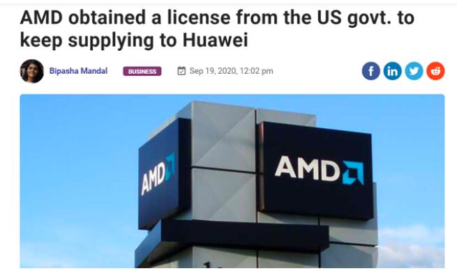 来自外媒的报道指,美国处理器巨头AMD宣布,该公司已经获得了对华为的供货许可。