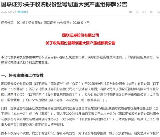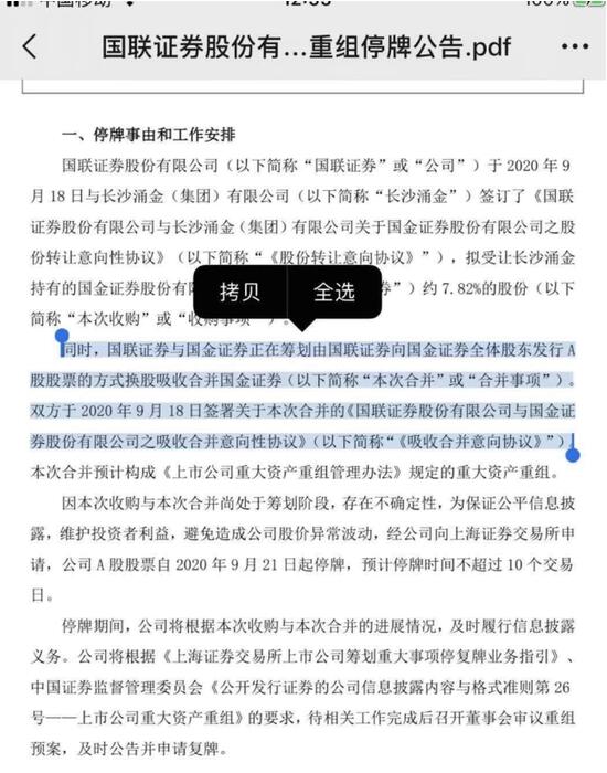 网上提前放出的国联证券公告截图