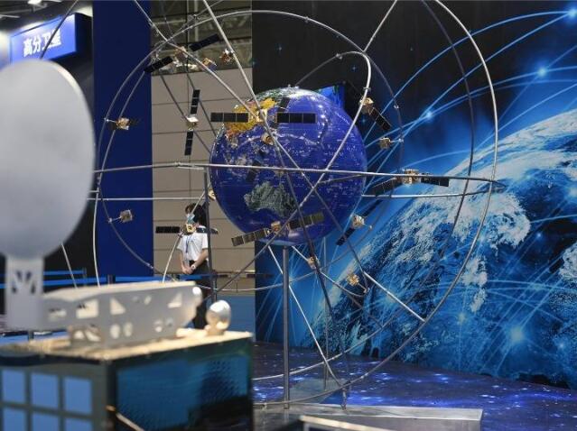 2020年中国航天大会现场展出的北斗卫星导航系统模型。新华社记者林善传摄