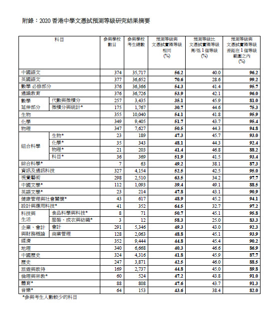 香港考試及評核局旨在探討日後一旦須取消公開考試,改為參考學校成績為考生預測公開試等級的可能性,進行2020年香港中學文憑考試等級預計研究,於今日(21日)舉行簡報會向學校介紹研究結果,提高學校教師評核素養。