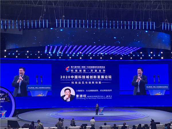 福耀玻璃集團創始人、董事長曹德旺作了題為《行走創新前沿,開啟科技變革》的主題報告。