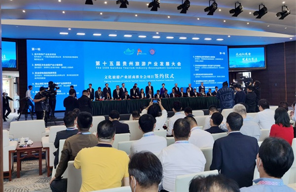 9月21日,第十五屆貴州旅遊產業發展大會在六盤水市盤州市舉行。貴州省委書記孫志剛、省長諶貽琴、文化和旅遊部黨組成員王曉峰等出席並見證簽約。本次大會簽約75個項目,合同資額548.76億元。其中,休閒度假類28個餐飲住宿類2個、戶外運動類8個、文化創意類8個生態特色食品5個、觀光旅遊和智慧旅遊類7個、旅遊裝備製造類3、鄉村旅遊類4個。20個項目進行現場簽約。按照「發佈一批、簽約一批、開工批、投產一批」的思路,把項目建設作為文旅產業發展最重要舉措,面對疫情影響迎難而上,上半年全省累計布文旅產業招商引資項目1318個,簽約298個,開工24個,投產131個。