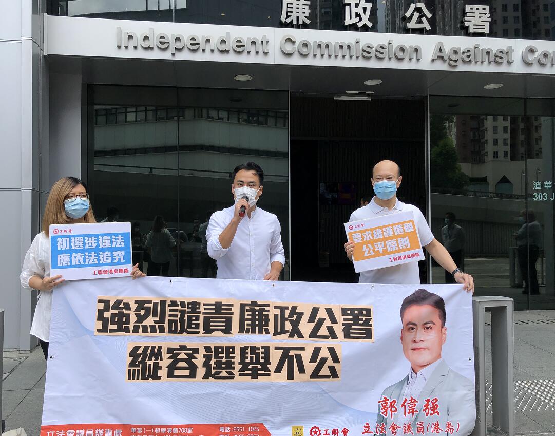 工聯會立法會議員郭偉強到廉政公署請願,要求廉署徹查反對派「初選」涉嫌違反《選舉(舞弊及非法行為)條例》。