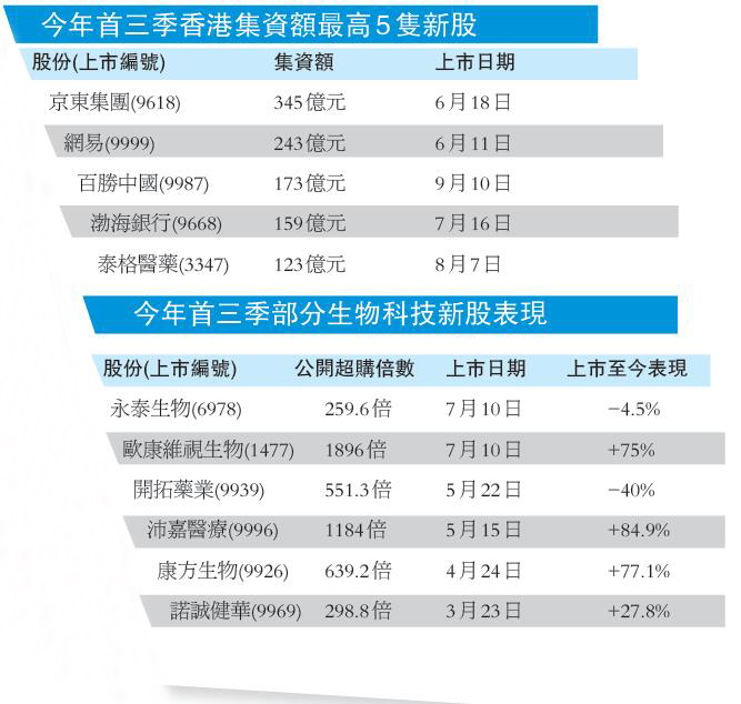德勤23日預計,今年香港新股上市融資(IPO)金額將達4000億元,全年新股上市數目達140家,其中第四季佔逾40家;其中生物科技行業更有望成為明年的市場動力。