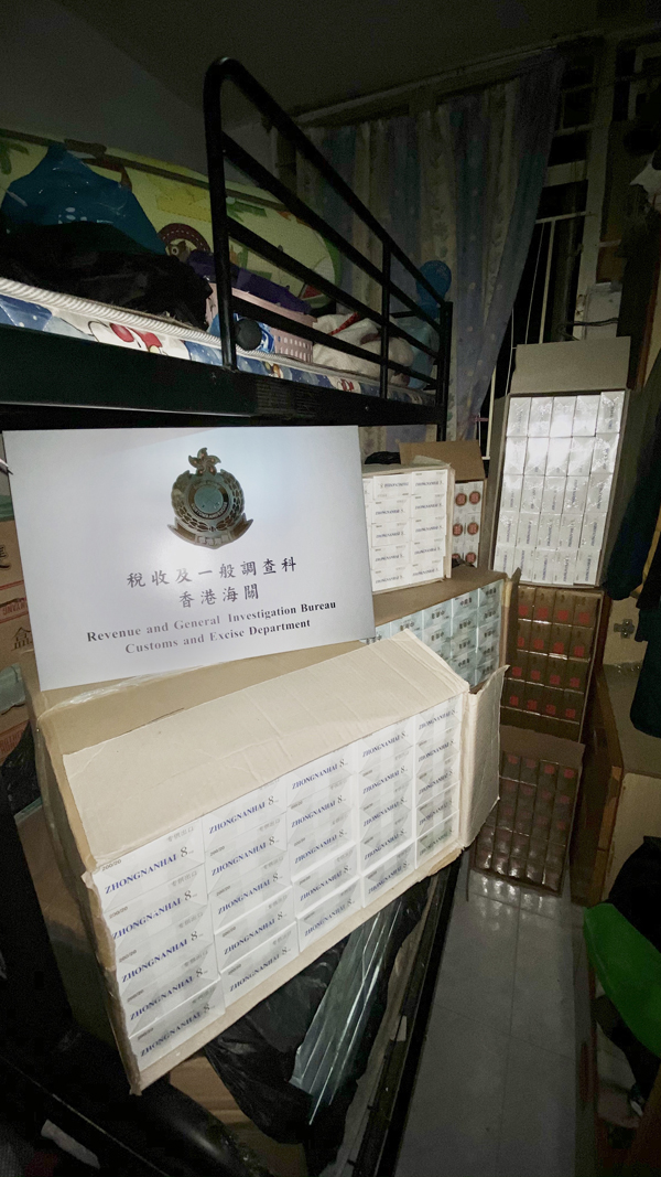 海關在香港仔一個公屋單位內檢獲的懷疑私煙。