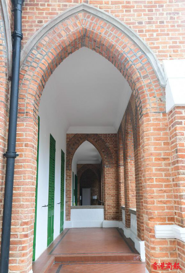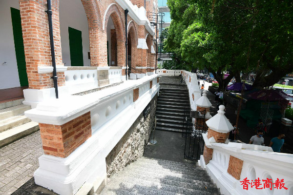 在繁囂的尖沙咀彌敦道一角,一座紅磚牆、尖型屋頂的古老建築靜靜地隱於這個鬧市之中。這座具118年歷史的建築,正是古物古蹟辦事處,其前身為全港最古老的外籍學校——九龍英童學校,已被列作法定古蹟。校舍設計富維多利亞時代特色,寛闊走廊、高樓底及金字瓦頂,加上毗鄰的聖安德烈堂形成特色古蹟群,仿佛鬧市中鏈接古與今的另一個世界。(崔俊良 攝)