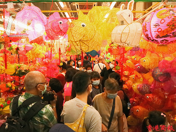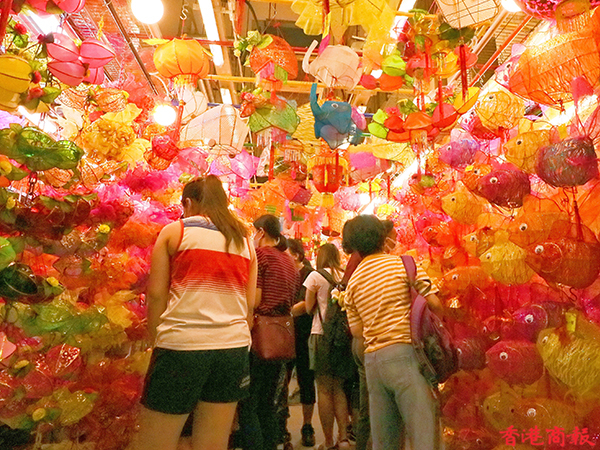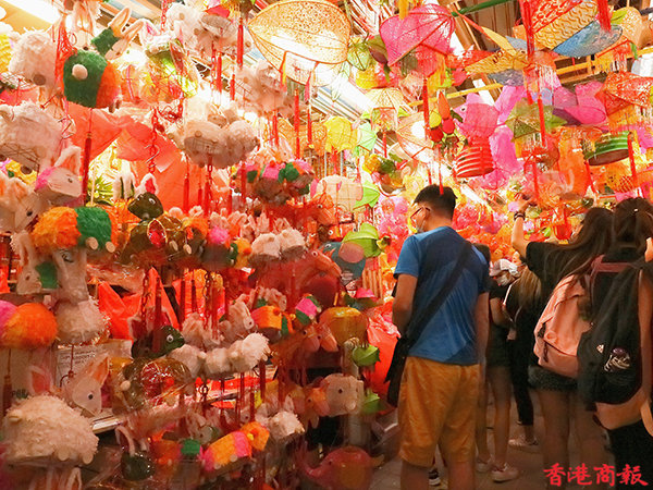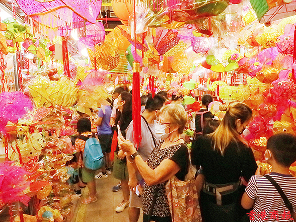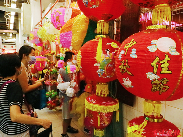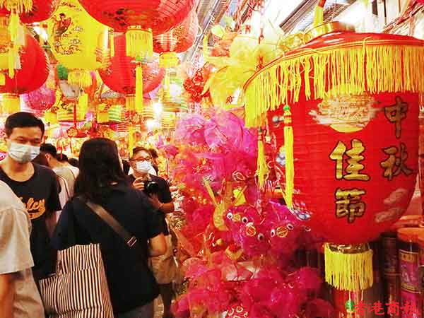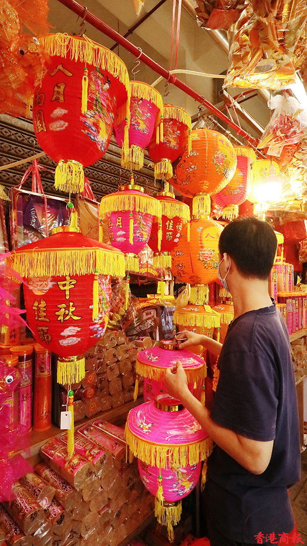 疫情下今年的中秋節不能與親朋好友一起度過,氣氛難免受到影響,但月餅、燈籠還是少不了的。每年中秋節前,在元朗大橋街市內的一間香燭店店主會在一條長40米的小街掛起超過一千個傳統紙紮燈籠出售,被街坊稱之為「燈籠街」,為中秋節增添了不少節日氣氛。