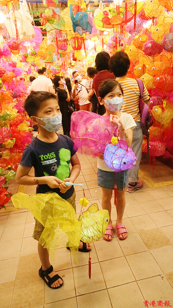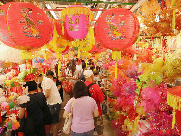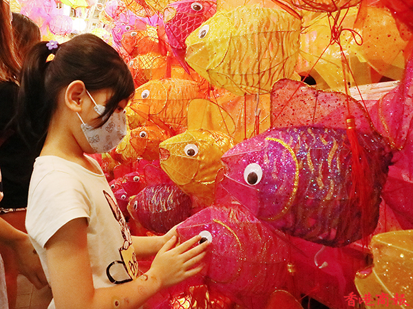這裏的燈籠造型精緻,放在一起形成壯觀畫面,猶如置身古代的花燈會,除了區內市民外,也吸引不少外區人士慕名前來打卡、購買,雖然是戴着口罩,但大人小童的歡笑驚嘆聲依然此起彼落。(記者馮瀚文 攝)