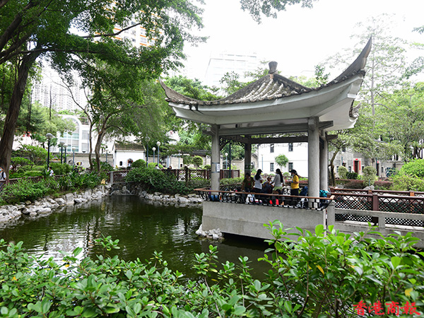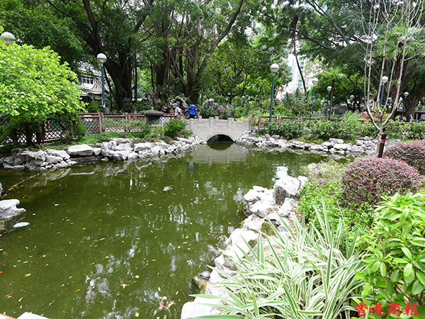 公園現有不同主題花園、錦鯉魚池、小拱橋、九曲橋、蓮花池等,為不少荃灣居民忘憂暫享寧靜的地方。(記者崔俊良 攝)