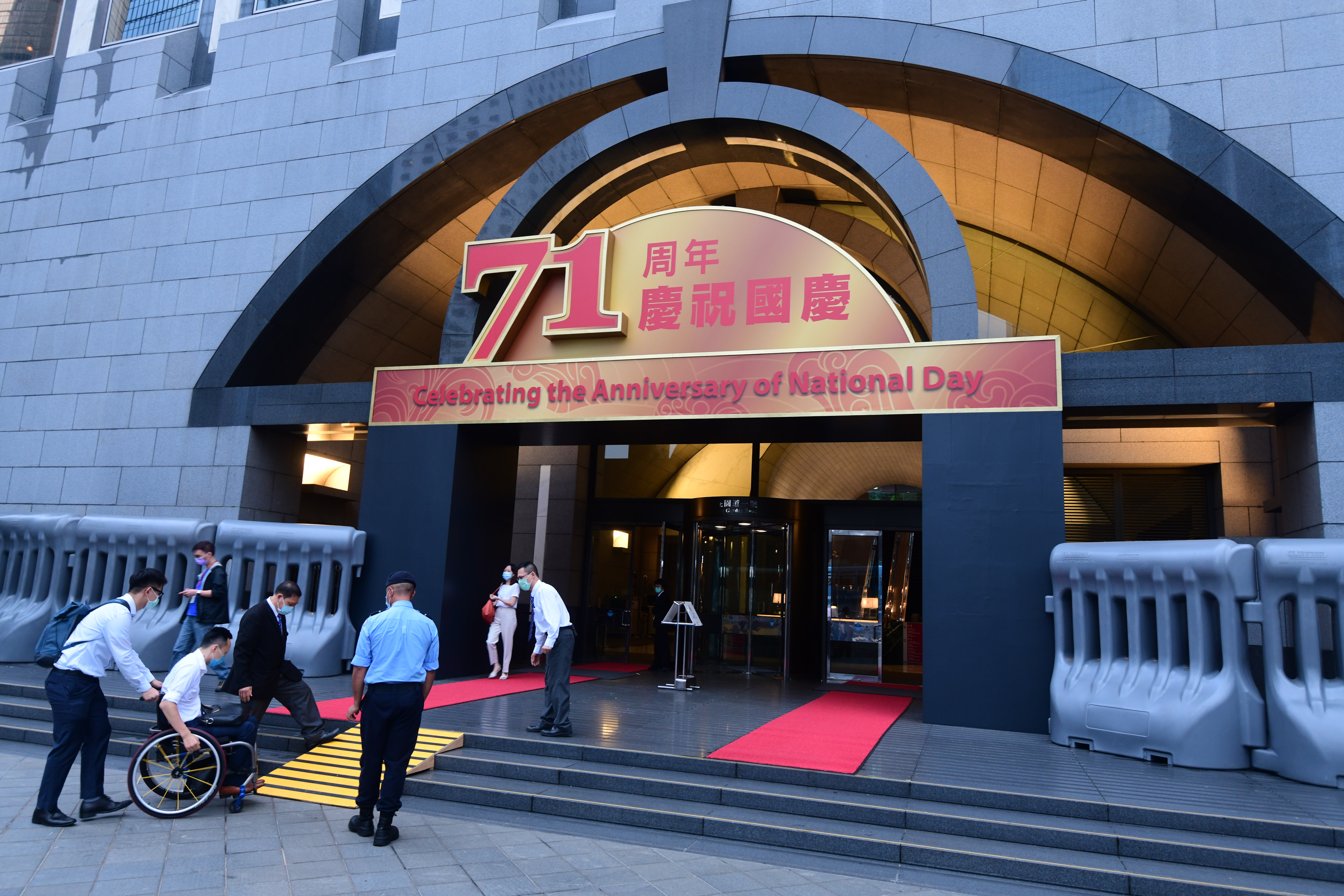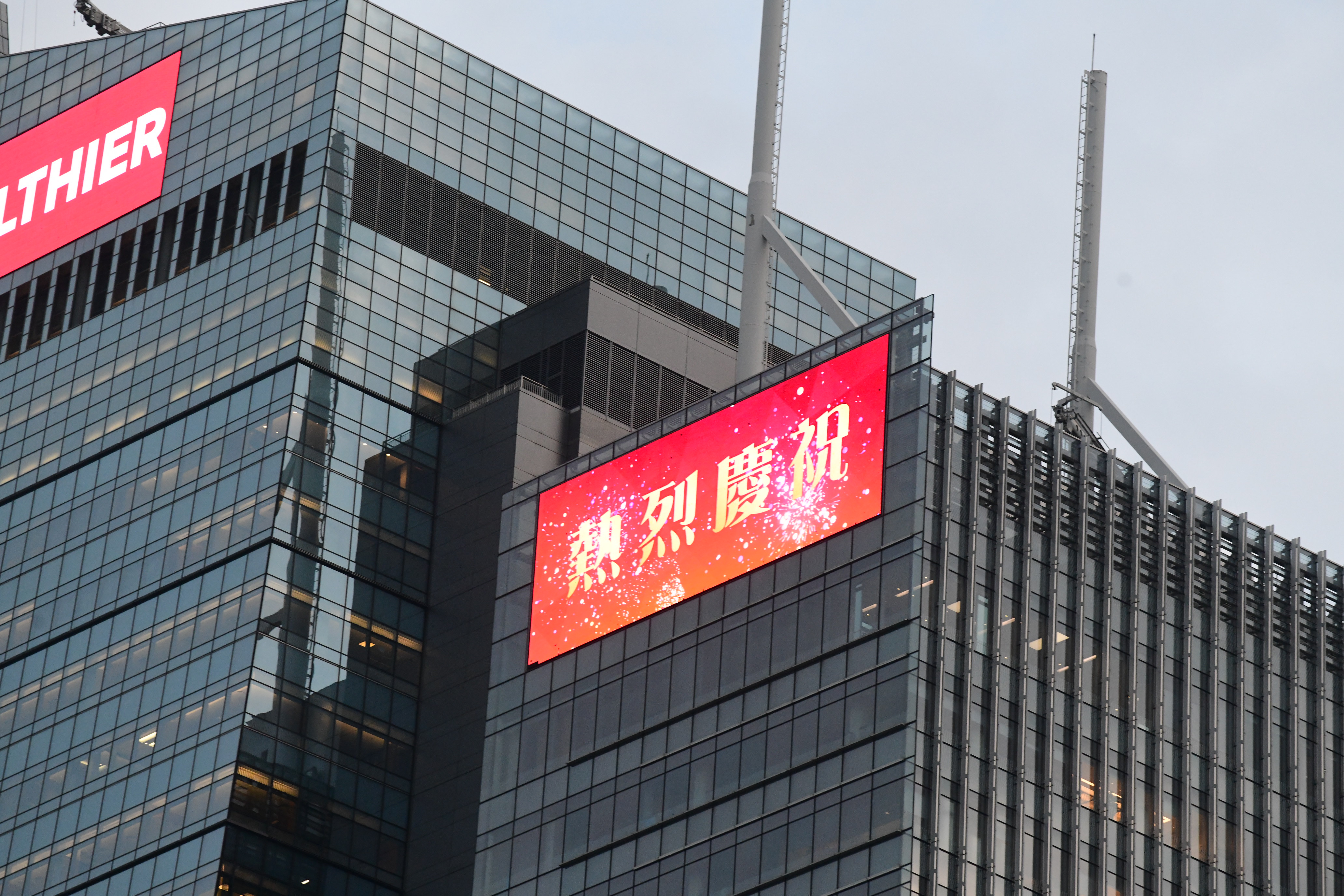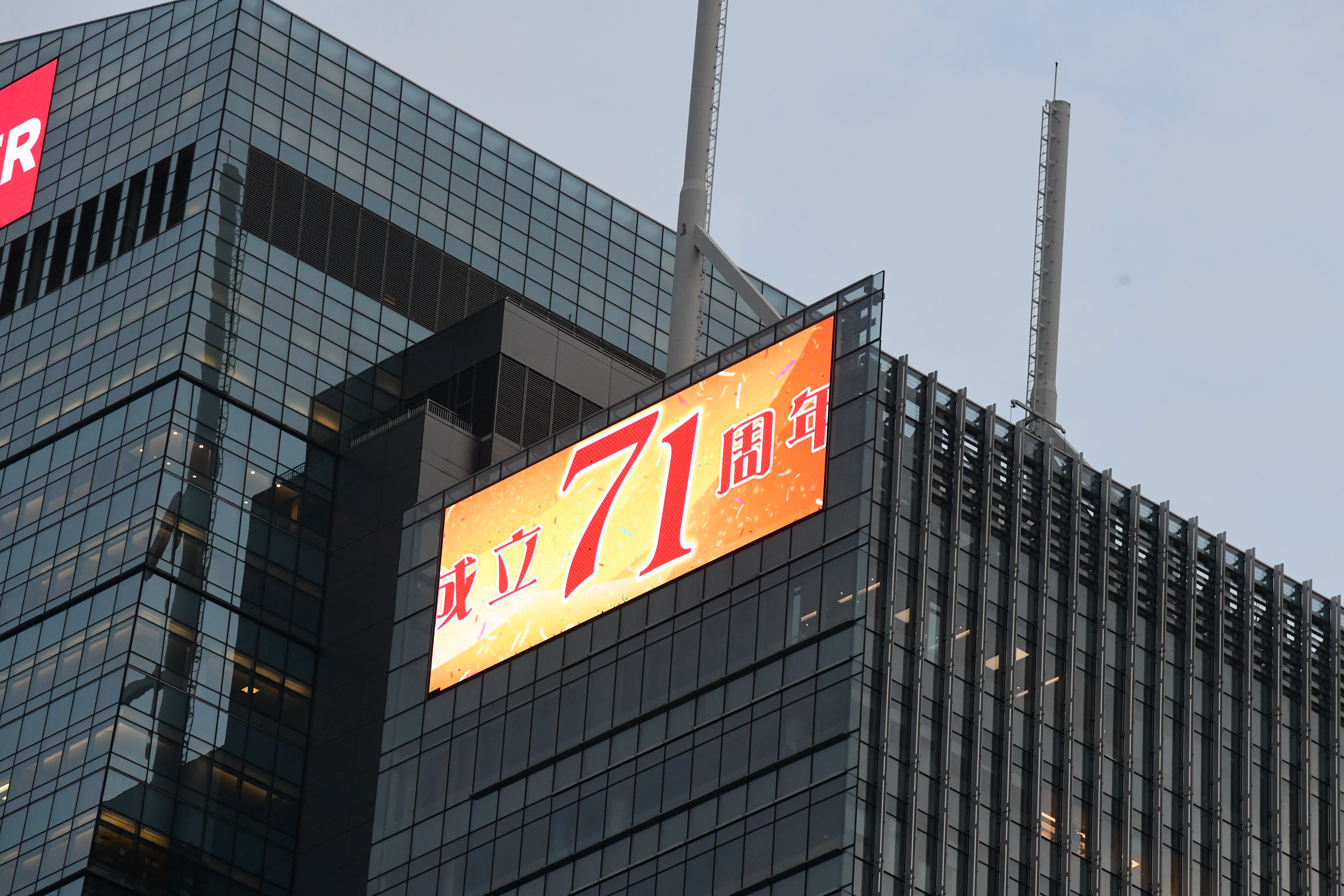 國慶節和中秋節将至,今日(30号)本港大街小巷即已装点上各式横幅,营造出浓浓的节日气氛。(摄影 崔俊良 郑玉君 罗璇)