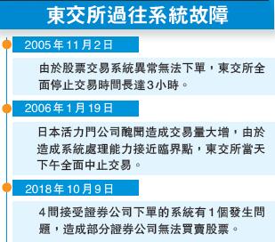 全球第三大的東京證券交易所(東交所)昨因電腦系統及硬件故障,罕有全日暫停交易。有交易員說,當天上午8時35分起,就無法透過系統交易。這是2018年10月以來,東交所再次因系統問題而停市,日本金融廳正調查事件。
