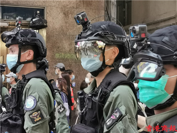 為減少外間對警方現場執法的質疑,前綫警員近日開始增置隨身記錄設備,昨日在銅鑼灣示威現場,所有的警員都配備了隨身攝錄機,首次實現全員「一人一機」。