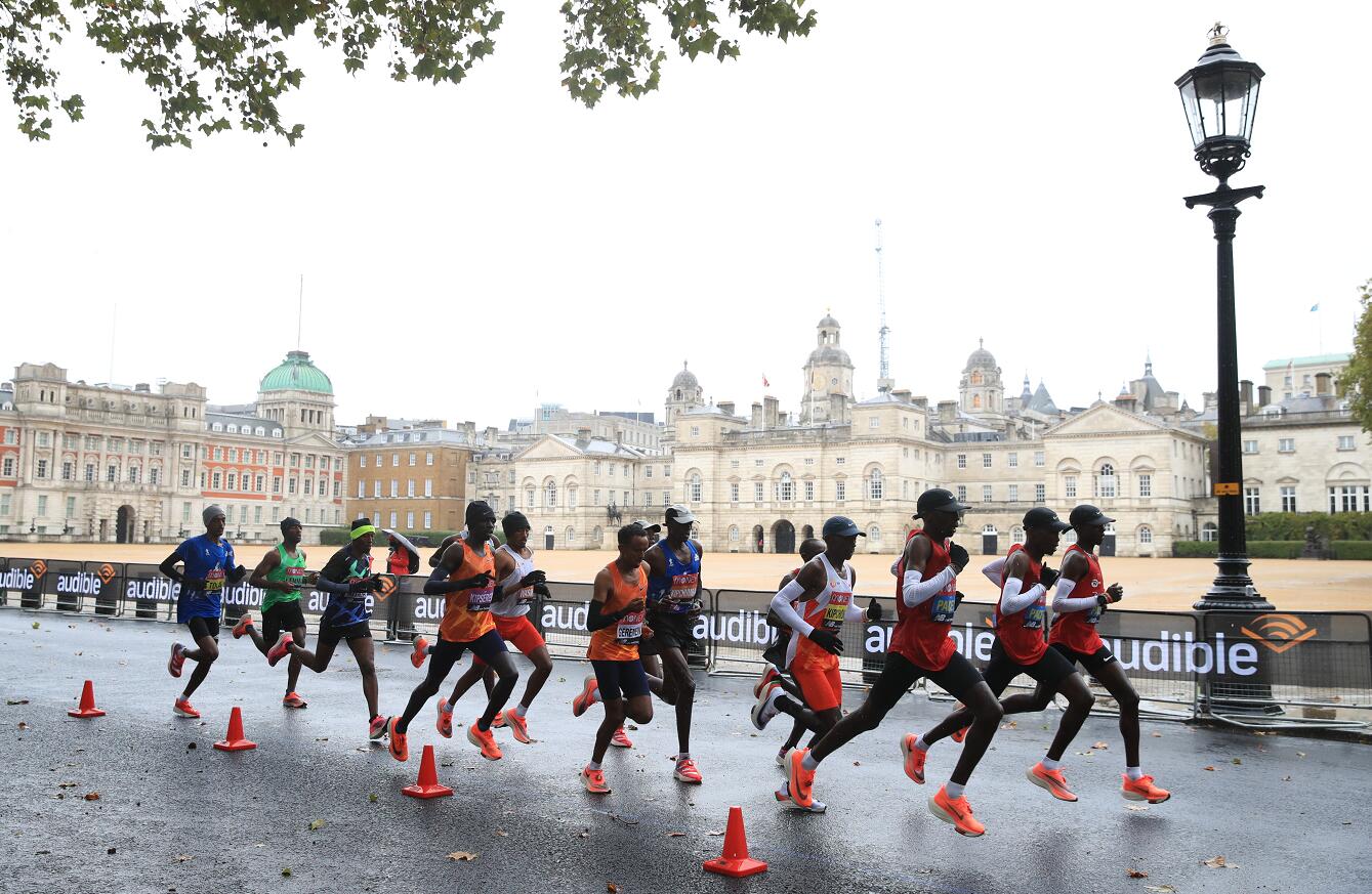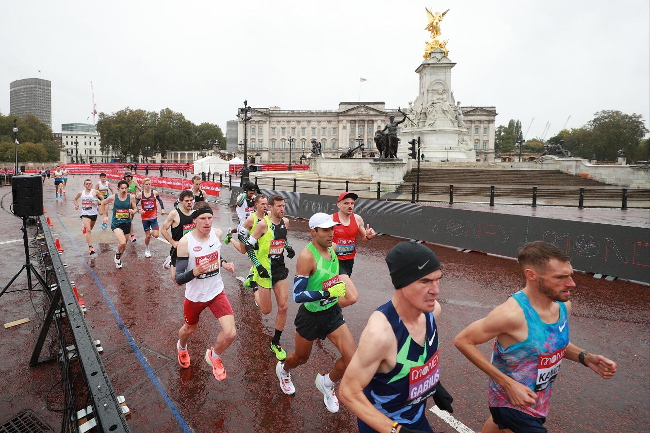 2020倫敦馬拉松周日(4日)舉行,受到疫情影響,今屆賽事只允許100名精英跑手參加。其他大眾跑者可將參賽名額保留至未來三年。今年倫敦馬拉松不用以往的賽道,而是在聖詹姆斯公園的環形賽道上展開角逐。觀眾將不允許入場及沿途觀賽,比賽日當天BBC進行全程直播。(圖源:路透社)
