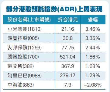 另外,港股ADR指數收漲569點,收報24029點。騰訊(700)升至約521元;阿里巴巴(9988)升至約280元。(記者 張智榮)