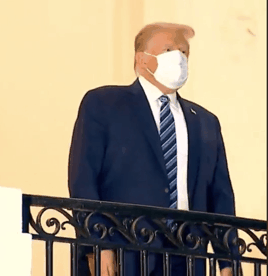 報道指,儘管特朗普仍未彻底痊癒,但他在回到白宮後就摘下了口罩。