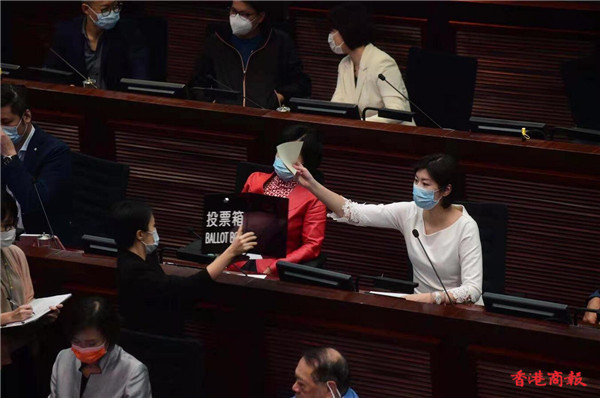 立法會大會於下周三(14日)開始,立法會內務委員會今日(9日)下午選舉正副主席。主持內會主席選舉的馬逢國宣布,民建聯立法會議員李慧琼以39票高票當選內會主席。李慧琼之後走上主席台,主持選舉內會副主席的程序。(記者 林駿強 報道 记者 崔俊良 摄影)