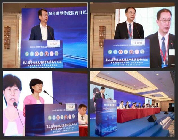 深圳市中醫藥學會李順民會長、廣東省中醫藥學會金世明副會長、深圳市衛健委中醫處劉冬雲處長以及中華醫藥學會孫永章副秘書長先後上台致辭,指出此次「粵港澳大灣區中醫藥高峰論壇」在弘揚中醫藥文化、總結中醫抗疫經驗以及指導今後中醫藥文化推廣普及工作方面的重大意義。香港註冊中醫學會會長陳永光和澳門中醫藥學會會長石崇榮通過短視頻對大會的勝利召開表示祝賀。