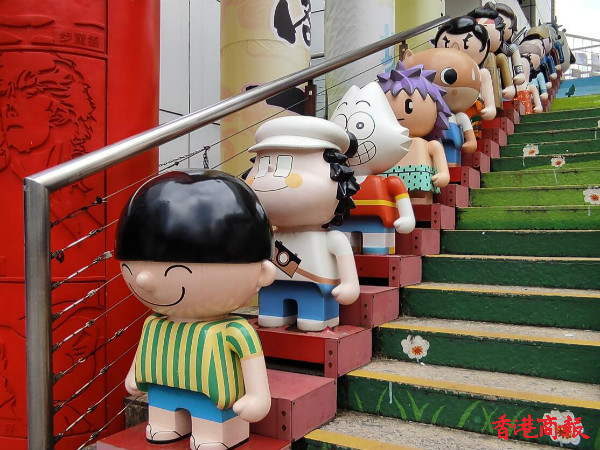 在尖沙咀柏麗大道的九龍公園入口,一批「Q版」漫畫人物雕塑在樓梯兩旁列隊歡迎參觀「漫畫星光大道」的人士。年長一代可以在这里重溫童年時心愛的漫畫角色,年輕一代可以體驗香港的獨有漫畫文化;外地遊客可以瞭解香港文化的多元性。「漫畫星光大道」亦讓九龍公園成為另一個感受到无尽創意的旅遊景點。(馮瀚文 攝)。