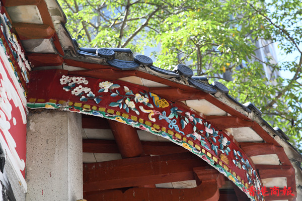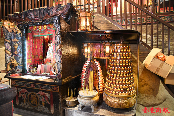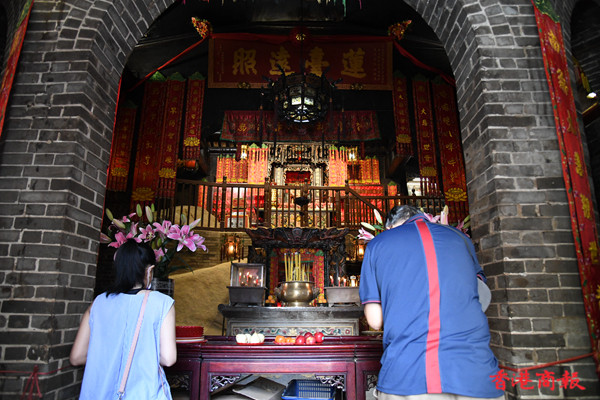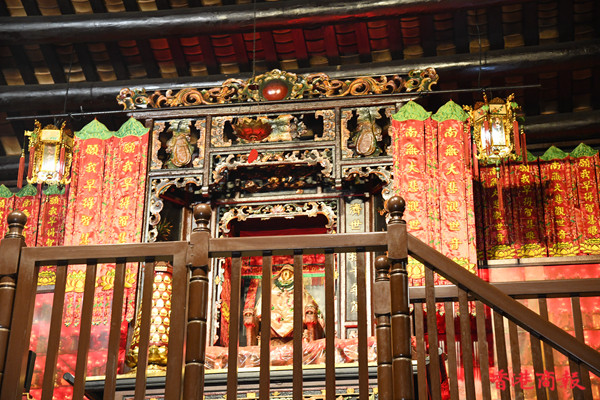 蓮花宮是兩進式建築,但兩進之間不設天井,前殿建築呈半八角形寶塔狀,設重檐攢尖屋頂,正面的小陽台設有西洋風格的欄杆。廟門設於左右兩側,與其他廟宇在中央設置廟門不同。主殿後部的建築為長方形,蓮花石亦位於此處,廟殿依蓮花石建,分成上下兩層,下層設石制神壇供奉觀音,上層設有太歲殿及木製觀音神樓,兩個樓層之間的平台則有韋馱殿。廟殿有立於道光與同治年間,雕工細緻的花崗石供枱(1864)、古鐘(1865)與石神壇(1885),及宣統年間的彩門(1909)。天花為六邊形,上有金龍與祥雲,前者神態活靈活現,似是呼應每年中秋期間舉辦的大坑舞火龍。而廟頂瓦脊則飾有象徵吉祥的寶珠、鰲魚及獅子等。(记者蔡啟文攝)