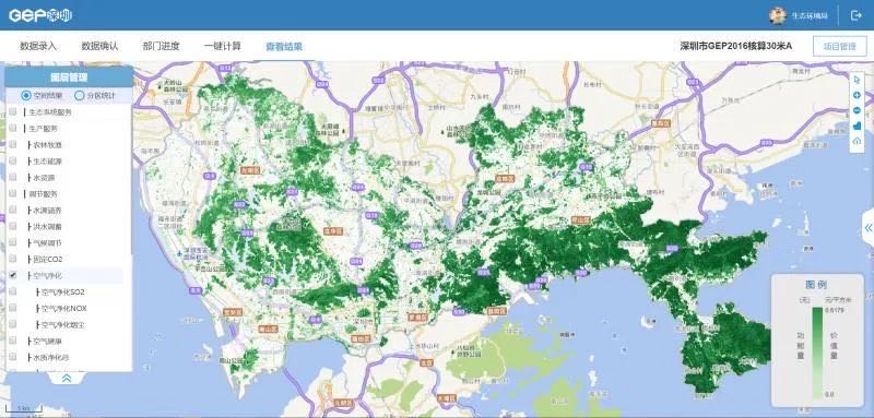 今年8月份,深圳市生態環境局組織中科院生態環境研究中心和市環科院開發並上線了首個城市GEP自動化計算平台,可實現200餘項統計數據在線填報,十餘種生態系統服務價值核算結果一鍵得出,極大地提高了核算精度和效率。