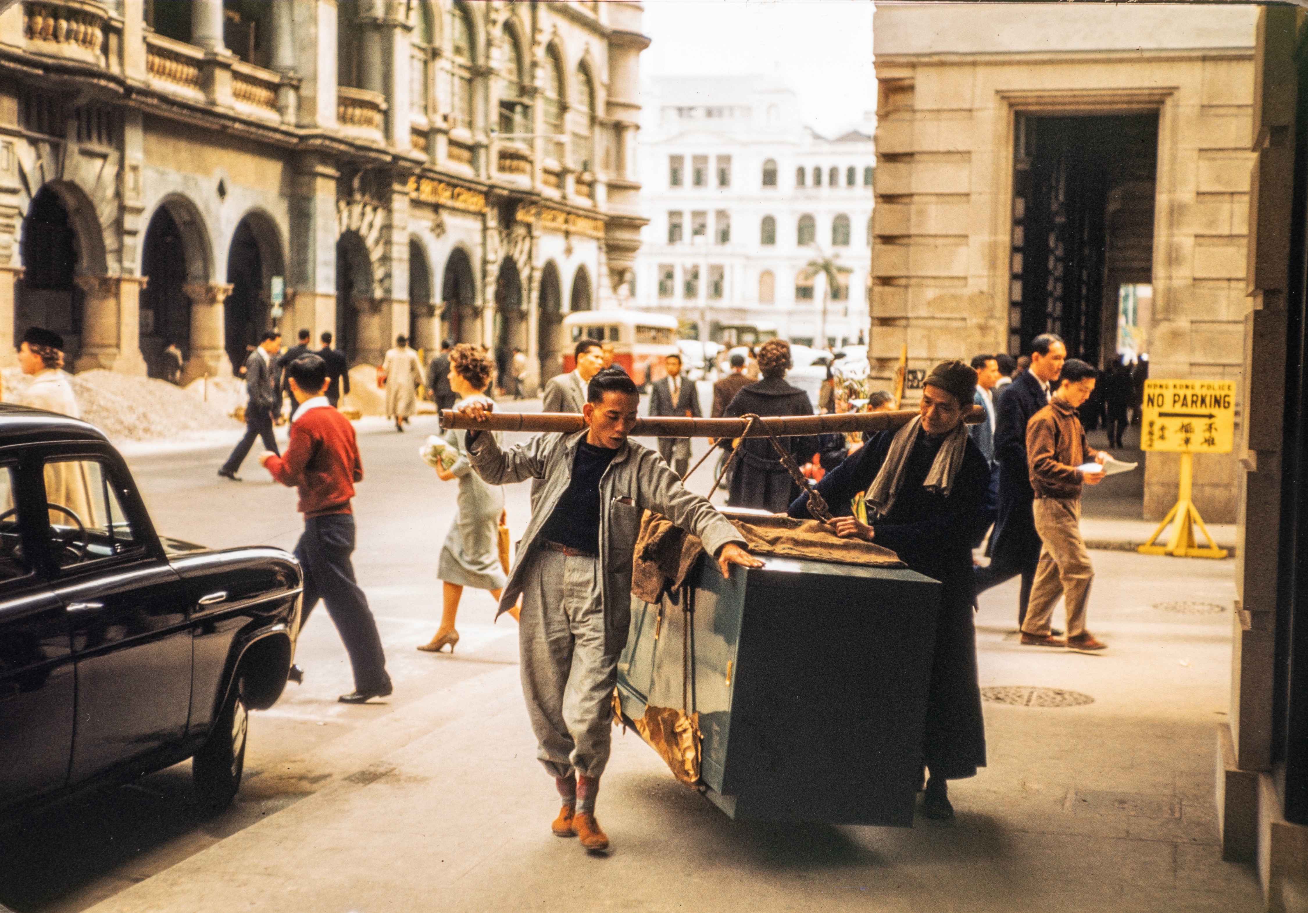 巴雷特拍攝的《太子大廈外賣力工作的苦力》,1958年。