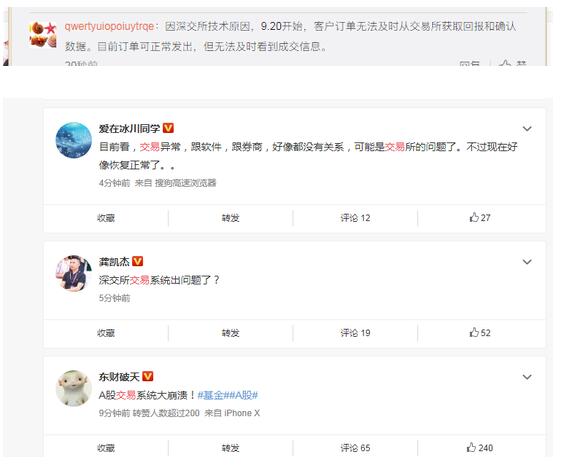 10月15日,據投資者爆料,華泰證券、中信建投、國金證券、中金財富等多個交易系統早上出現卡單現象。有市場傳聞稱,是由於今早深交所系統回報響應速率慢,影響客戶委托交易及無法撤單。