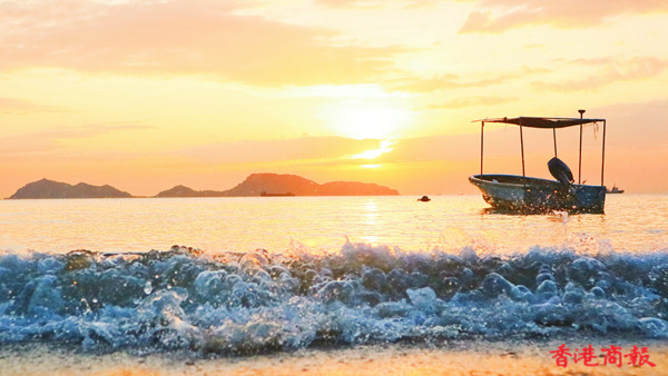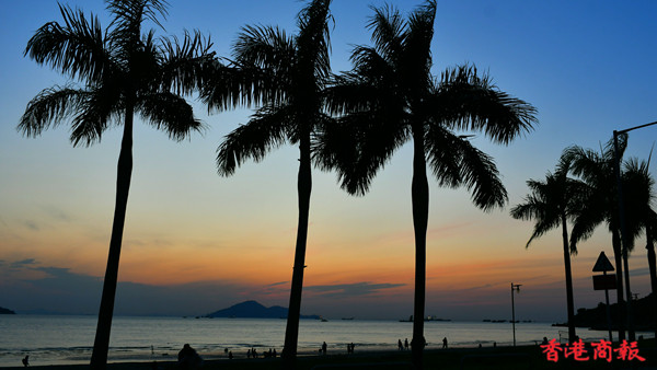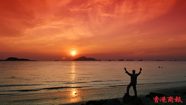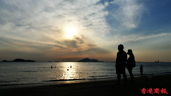 龍鼓灘位於新界屯門的西面,是香港西面海岸線最邊緣位置的地方,是欣賞落霞的知名景點。每當潮漲時海面湧起滾滾的海浪,在夕陽照耀下金光閃閃,更顯氣勢。除了攝影好愛者外,也有不少情侶、一家大小在沙灘漫步、嬉戲。(记者 馮瀚文攝)