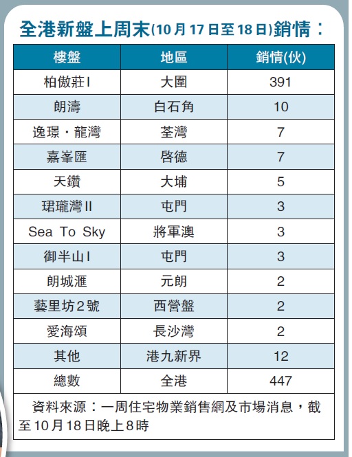 柏傲莊I於周六及日(17及18日)分兩日推售391伙,上周六推售234伙予大手客認購,沽出232伙。昨日為B組一般買家組別、即散客揀樓時段,涉及發售單位159伙。據知,截至昨日傍晚6時許,全數單位已獲揀選,換言之,項目首輪推出的391伙,兩日內已全數沽清。