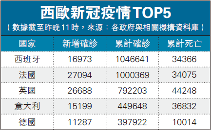 歐洲多國新冠疫情形勢嚴峻。世衛稱,自上周五以來,歐洲新增病例上升了44%,「令人擔憂」。西班牙成為西歐首個累計新冠確診病例超100萬宗的國家,隨後法國累計確診病例亦突破100萬宗。