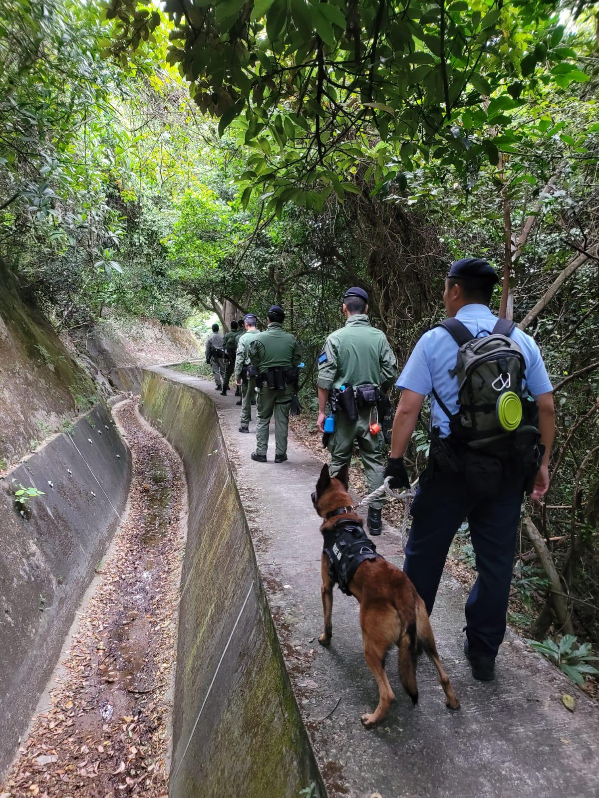 警方今日(23日)出動軍裝、便裝及警犬隊於所屬地區的鄉郊地區進行反爆竊巡邏行動。(香港警察FACEBOOK專頁圖片)