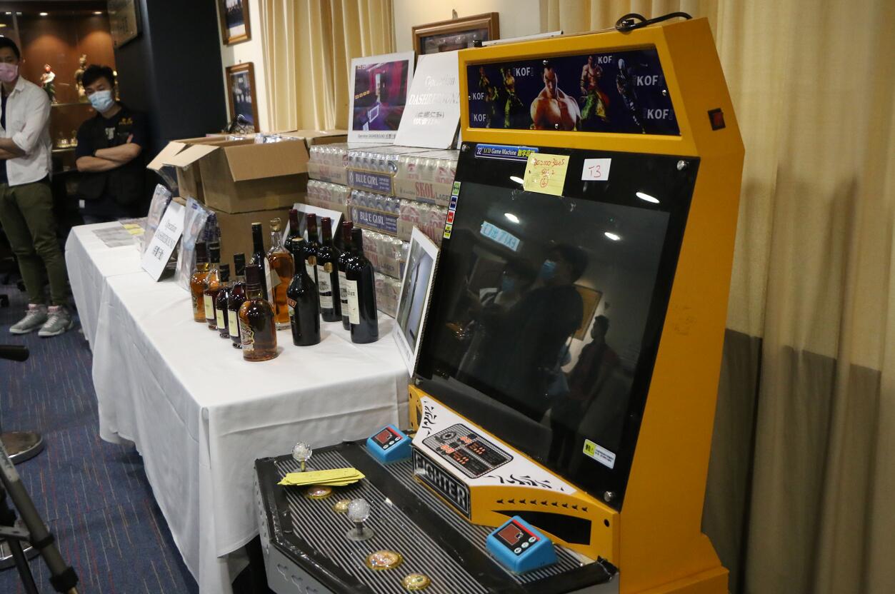 警方在行動中檢獲一批證物,包括遊戲機及烈酒