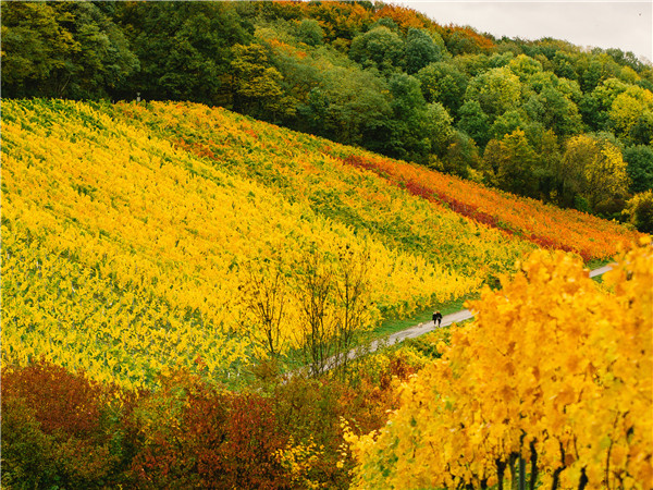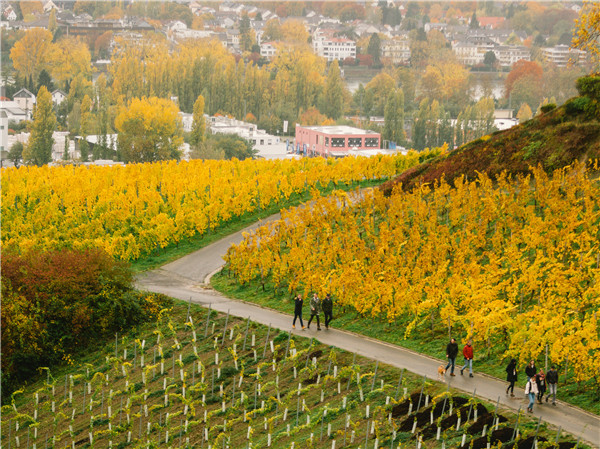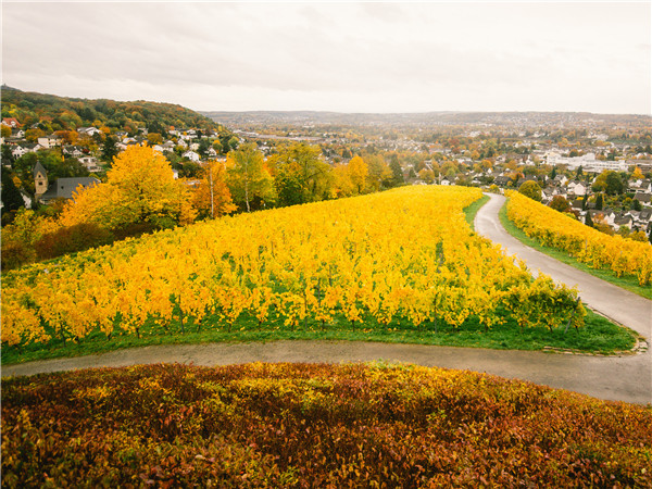 2020年10月25日,在德國西部波恩附近的小鎮科尼格斯溫特,秋色彌漫、層林盡染,觸目所見盡是鮮豔的金黃色。人們漫步在街區、葡萄園和山林,寂靜之中頗有幾分秋日勝春朝之感。