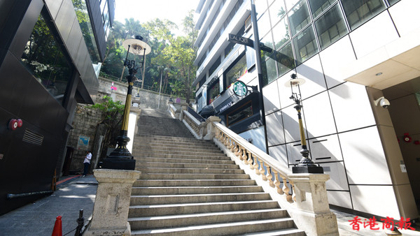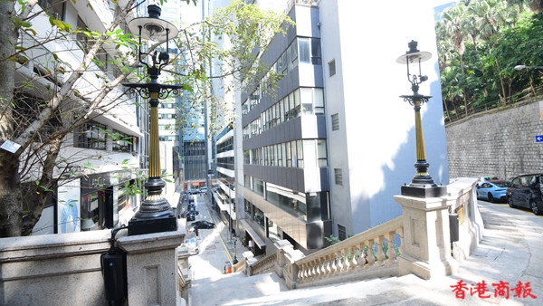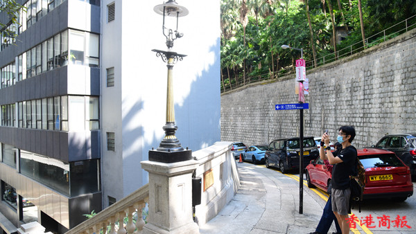 不過,自2018年9月16日超強颱風「山竹」襲港後,石階幾被摧毀。其中一棵石牆樹被吹塌,壓毀石階左面扶手及水泥花瓶,裂成200多塊殘件;4盞煤氣燈更有3枝倒下,其中一支斷裂。古物古跡辦事處、路政署與煤氣公司花費一年多時間,以原材料及原工藝原則維修,並委託英國原供應商修復煤氣燈,去年12月23日終修復成功回復舊貌,4盞煤氣路燈,重新照亮這個歷經風雨的古跡。(記者崔俊良攝)