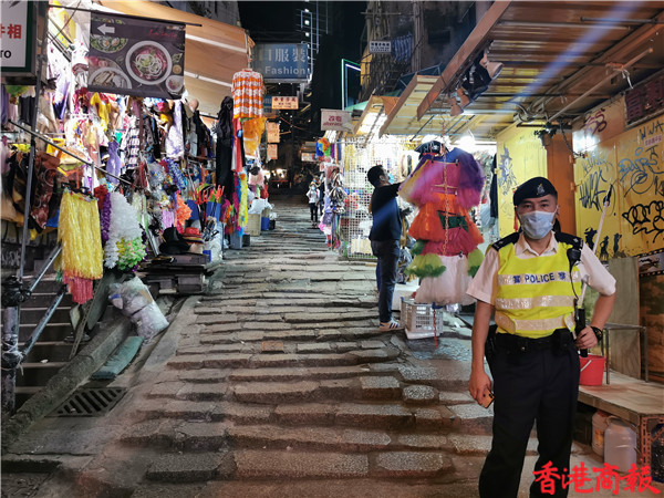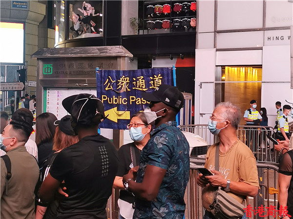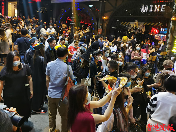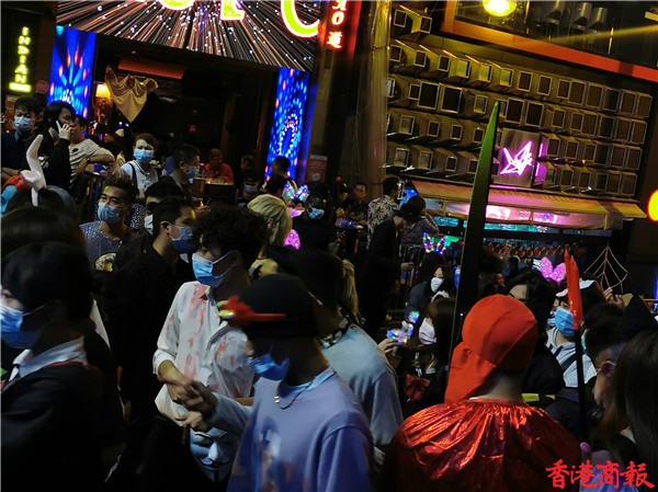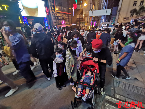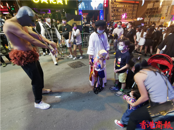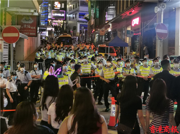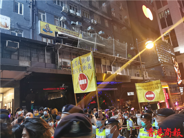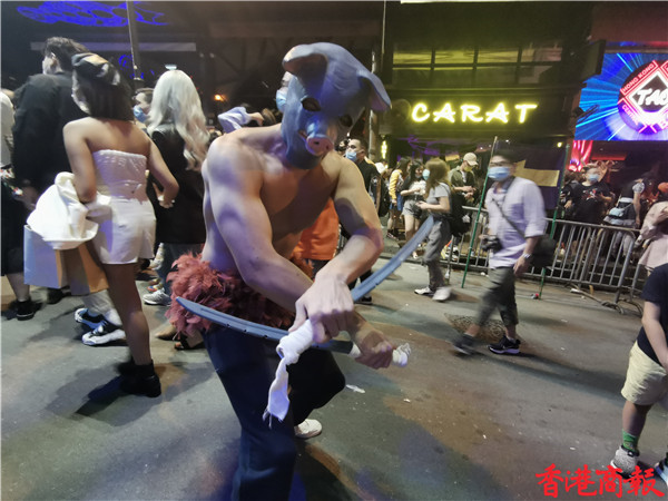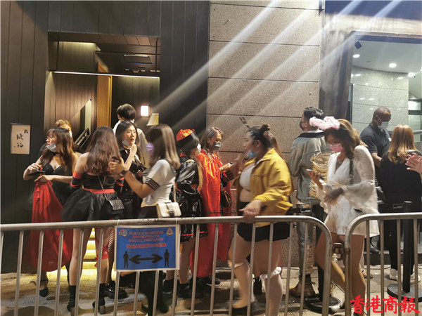 一年一度的萬聖節來臨,市民的熱情未因新冠肺炎和限聚令消減,中環蘭桂坊的酒吧張燈結綵人頭涌涌。由於去現場的人太多,為了進行人流管控防止發生危險,警察提高戒備圍起公共通道。從地鐵站出來差不多要繞一個小時的路才能抵達蘭桂坊。
