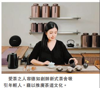 年輕人不懂茶道,對林林總總的茶葉無從入手,職員會介紹茶的沖泡方法,提供茶香小瓶,客人透過聞香再選擇喜歡的茶,同時亦有冷泡茶試飲,讓「新手」茶客不會不知所措,踏出認識茶道的第一步。容德如認為茶道若結合其他文化藝術形式,可達到一加一大於二的效果,比如瑜伽、書法等,她曾舉辦類似的茶藝活動,也將茶道跨界與時裝、護膚品牌合作,展現茶的時尚一面。由生活商品入手引起年輕人注意,從而帶起茶文化,對傳承茶道也不失為一條出路。
