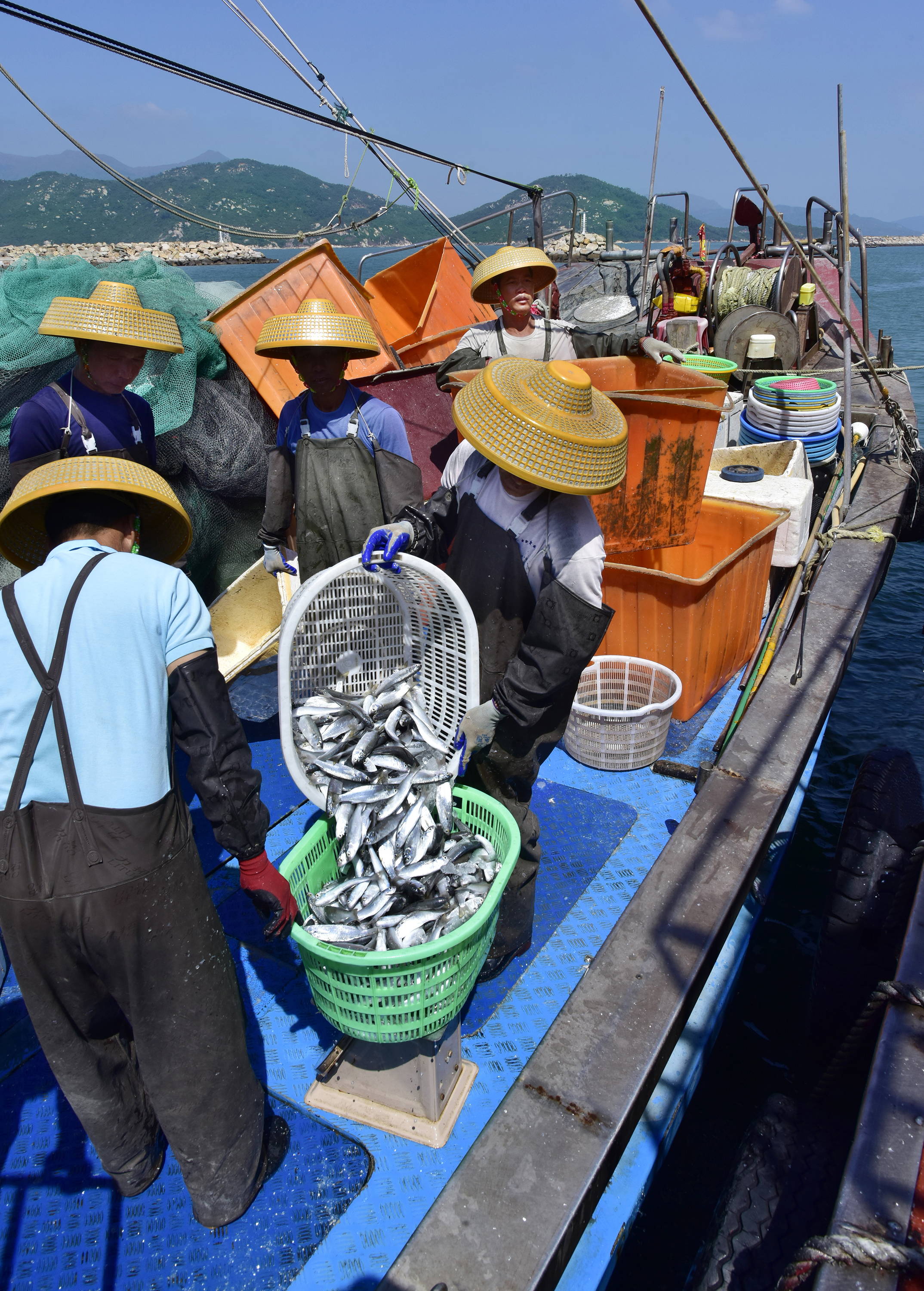 中秋過後的一個早上再到長洲尋找拍攝鱭魚。長洲一向是罟網漁船(簡稱:罟仔)的集散地,罟即漁網,罟仔是近岸以圍網方式撈捕中小型魚類,有鱭魚、泥鯭、油立仔、牙帶、池魚及墨魚等。在老漁民指點下,知道有罟仔網艇把鱭魚交去買手船,隨即乘駁艇出海,到近西灣,見到這兩艘船艇泊在一起,多名漁民正忙碌地把大量鱭魚提出交去買手船,我立刻舉起相機拍攝,漁民沒有什麼大的反應,原來他們要盡快完成交易,之後再次出海圍捕鱭魚,我即問可否同行?回答是不可!上岸後在西灣一帶海岸守候,希望可以再次拍攝到鱭魚飛躍水面的壯觀景象,但只見三兩鱭魚零星彈跳出海面而已,有點失望!