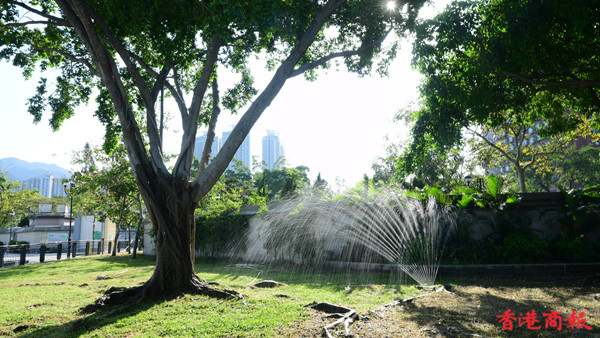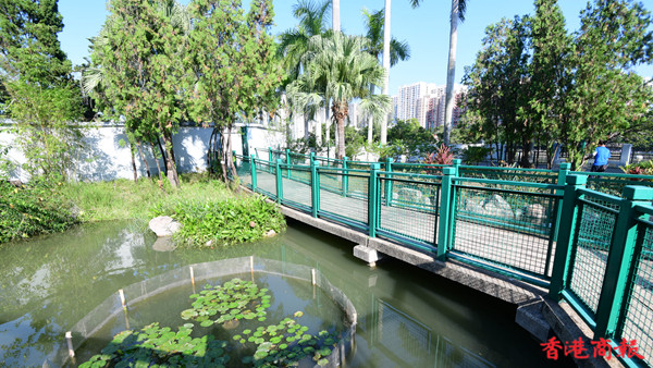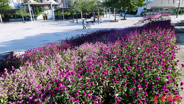 沙田公園內鳥語花香,現正秋意濃濃,更適合賞花感受微涼秋色。沙田公園內設有多個特色花園,栽種了400種、約11萬株本地及外來植物,以藍花楹最為馳名。在源禾路出入口旁草地,種植了10多棵藍花楹,每年4至5月間盛開後形成紫色花海,引人入勝。(記者崔俊良攝)