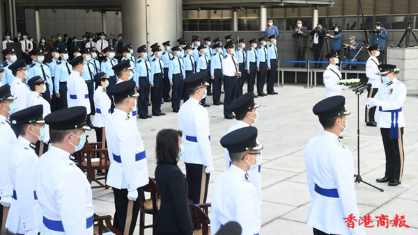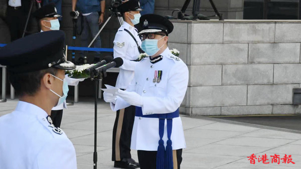 鄧炳強续指,香港警務處退役同僚協會、皇家香港警察協會的成員,以及多位警隊的舊同僚今日亦出席了儀式。跟許多警隊前輩一樣,他們在職期間貢獻良多。他們的努力亦為警隊贏得美譽,代表着我們引以為傲的傳統。藉着新一代同事的努力,我深信警隊的優良傳統將得以薪火相傳,而這優良傳統亦使香港警隊成為世界上其中一支最優秀的執法隊伍。