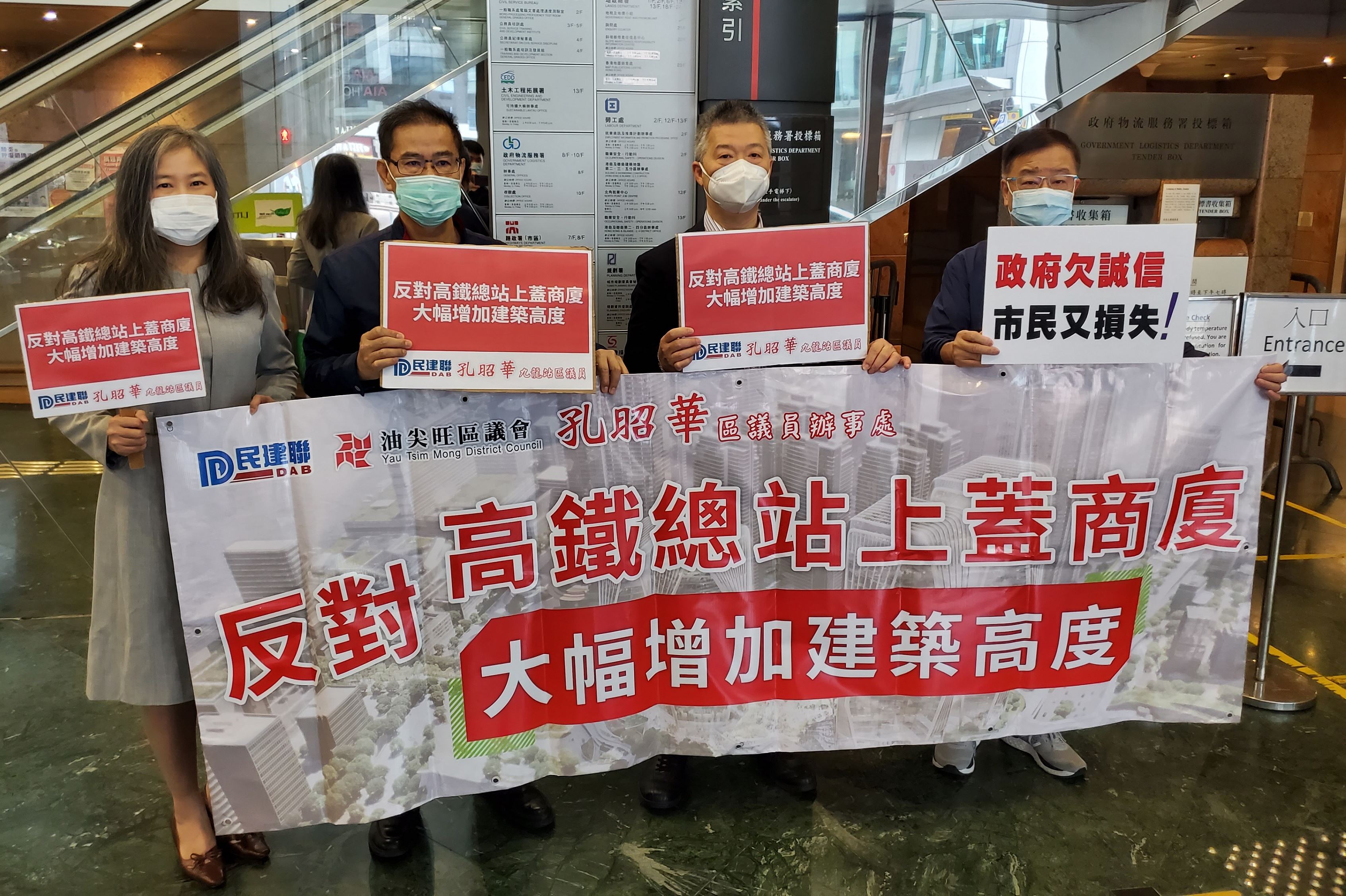 城市規劃委員會今日(6日)的會議將商討是否按發展商要求,延期處理放寬建築物高度限制的申請。民建聯油尖旺區議員孔昭華今日(6日)則聯同居民前往城規會請願,要求城規會考慮居民的陳述,反對高鐵總站上蓋商廈申請放寬建築物高度限制。