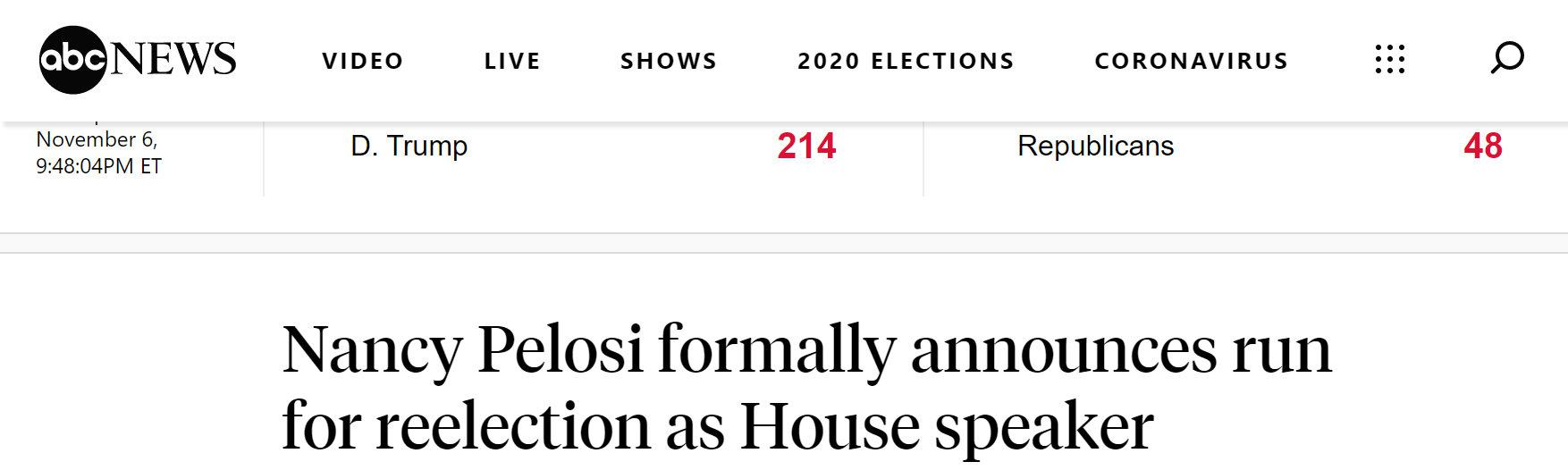 據美國廣播電視公司(ABC)當地時間6日晚消息,美國國會眾議院議長佩洛西正式宣布競選連任。这将标志着她第四次担任议长。
