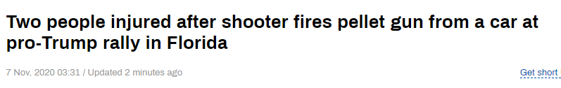 據報道,射擊者在佛羅里達州勞德代爾堡的唐納德·特朗普總統支持者人群中釋放了一枚子彈槍,造成兩名婦女受傷。據報道,攻擊者從行駛中的車輛發射了武器。