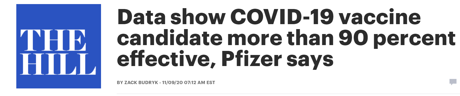 此前,據美國《國會山報》等媒體報道,美國輝瑞公司9日宣布,後期數據顯示,輝瑞研製的候選新冠疫苗在預防新冠的有效性超過90%。