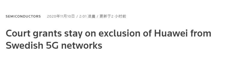 當地時間11月9日,综合瑞典電視台及路透社報道,斯德哥爾摩行政法院周一批准暂缓执行瑞典电信监管机构 PTS 上月做出的将中国电信设备製造商華為和中興排除在5G网络之外的禁令。