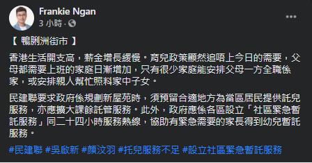 民建聯觀塘區議員顏汶羽10日在社交平台表示,香港生活開支高,薪金增長緩慢,只有很少家庭能安排父母一方全職在家照料家中子女。他建議政府在規劃新屋苑時須預留合適地方為當區居民提供託兒服務,亦應擴大課餘託管服務;同時應在各區設立「社區緊急暫託服務」和24小時服務熱線,協助有緊急需要的家長得到幼兒暫託服務。(記者唐信恒)