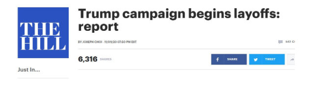雅虎新聞稱,在投票日之後,這是大多數競選團隊的普遍做法。一旦競選活動結束,競選團隊的大多數員工,特別是那些負責策劃活動的員工,就不再被需要了。