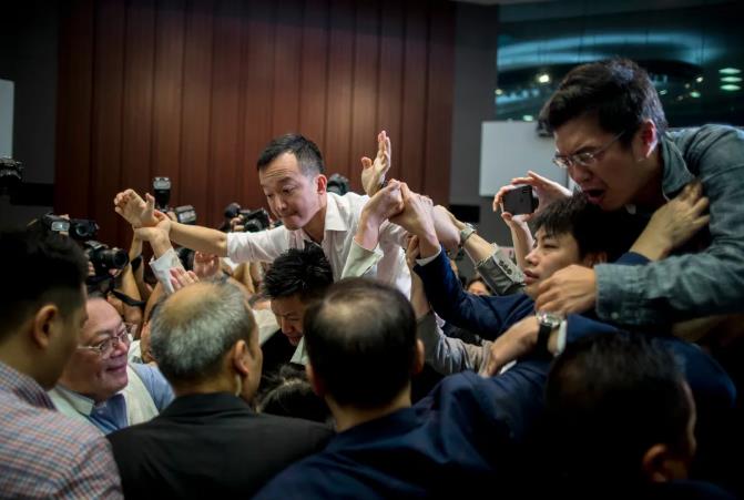 2019年5月11日,香港立法會,攬炒派議員陳志全等試圖搶走經民聯議員石禮謙手上的擴音器。