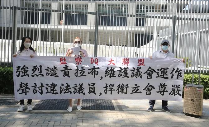 2020年11月6日,市民前往立法會大樓外請願,聲討攬炒派議員在立法會會議期間惡意拉布、癱瘓議會。