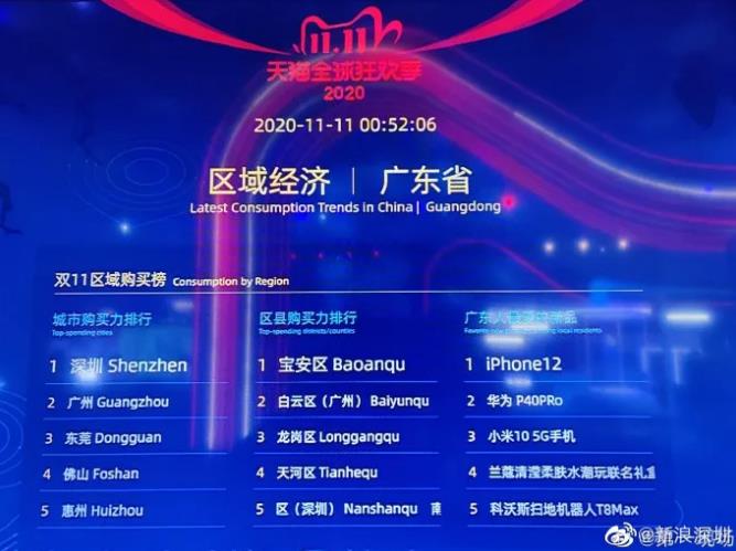 今年「雙11」,剁了兩次手,「吃土人」成功升級「吃圭人」。11月11日0点0分26秒,阿里巴巴数据显示,天猫双11成功扛住了58.3万笔/秒的订单创建新峰值,第一波洪峰已过。而在紧接下来的0点30分,阿里巴巴数据显示,2020年天猫双11全球狂欢季实时成交额突破3723亿。据天猫数据,11月1日 00:00——11月11日12:00,不含港澳台,中国各省份购买金额top10分别是广东、浙江、江苏、上海、山东、北京、河南、四川、福建、湖北。